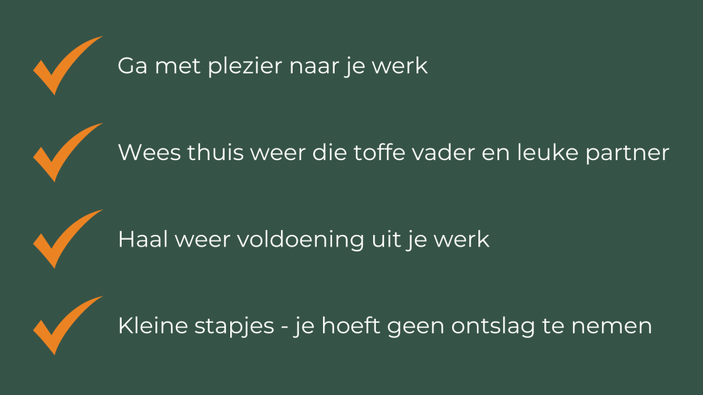 In het e-book worden de 5 meest voorkomende fouten behandeld, die ervoor zorgen dat je niet gelukkig bent in jouw baan. Die fouten zorgen ervoor dat je vaak met tegenzin naar je werk gaat, vermoeid en chagrijnig thuis komt en daardoor ook niet de leuke vader kan zijn die je diep van binnen wel bent.