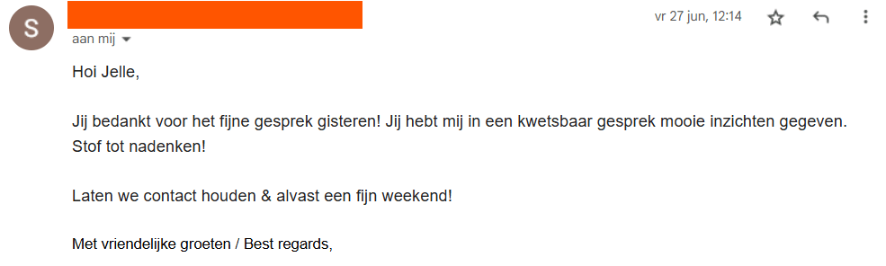 Ik zeg dat de strategiecall super waardevol is, maar deze reactie van een klant zegt toch nog veel meer!? (Deze man wil graag anoniem blijven, daarom heb ik zijn naam verborgen.)